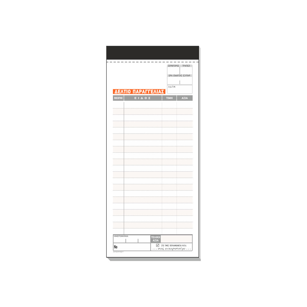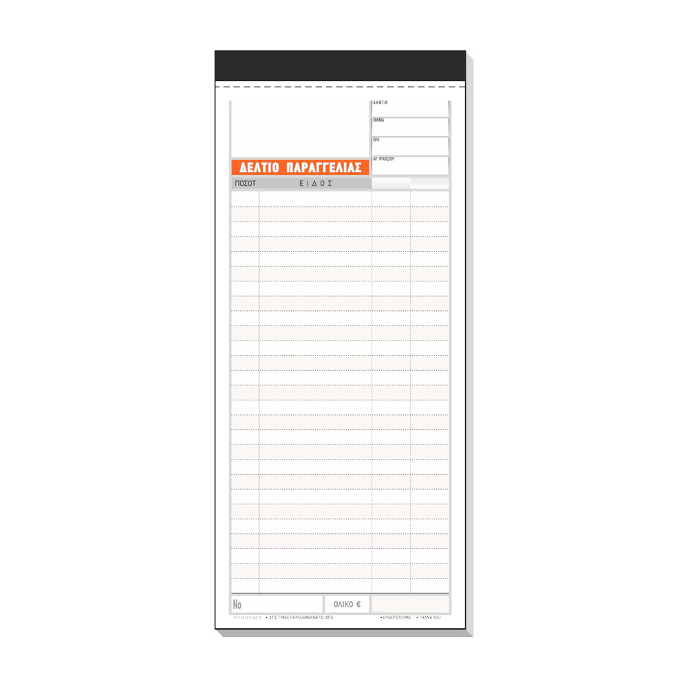 Δελτίο Παραγγελίας Εστιατορίου αυτογραφικό 2τυπο